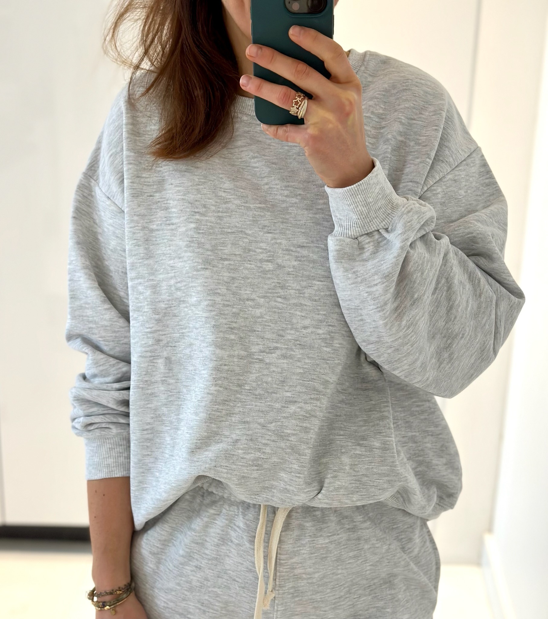Sweat Roméo gris. Doté d’un col rond large et de manches longues resserrées aux poignets. Sa coupe large et ses épaules tombantes lui donne un style sport et classe. Le logo de la marque est visible en bas à gauche du sweat dans des couleurs fluos. Le bas du sweat est légèrement plus serré.